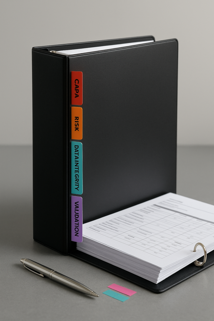 - Lunch drill: Recreate your standard templates from memory. Include CAPA headers, RPN matrix, and data-integrity checklist.