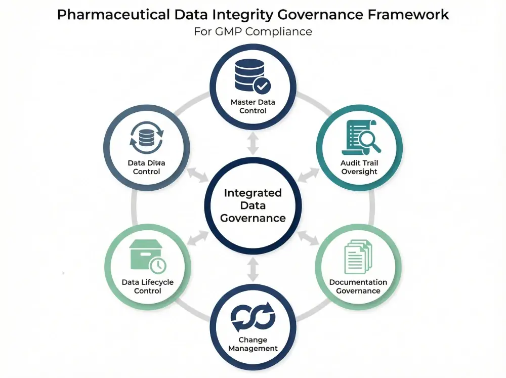 Effective pharmaceutical data governance depends on audit trail requirements GMP, master data management in pharma, and strong documentation control. This guide explains how ALCOA principles and electronic batch record compliance strengthen inspection readiness and data integrity in pharmaceutical manufacturing.